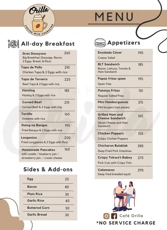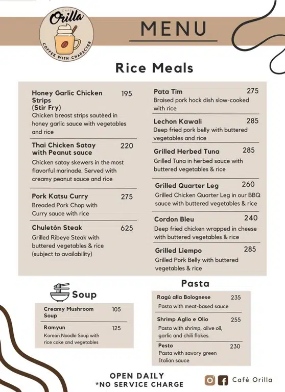 Ang munting café na ito ay matatagpuan sa gitna ng Camp Riverside. Alam mo ba na ang salitang Orilla ay nangangahulugang riverside sa wikang Espanyol?